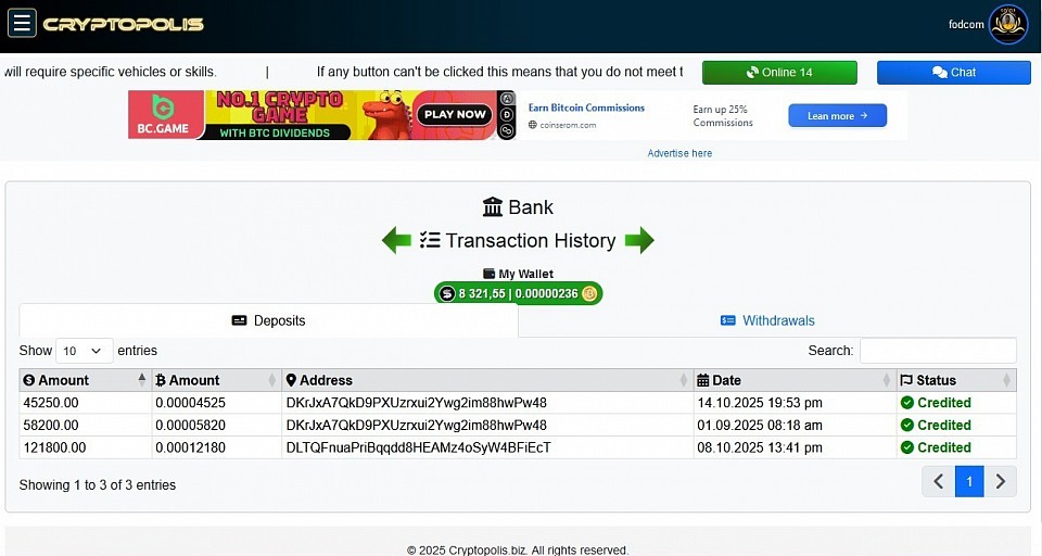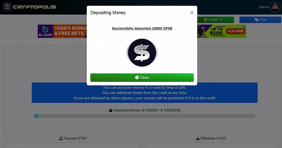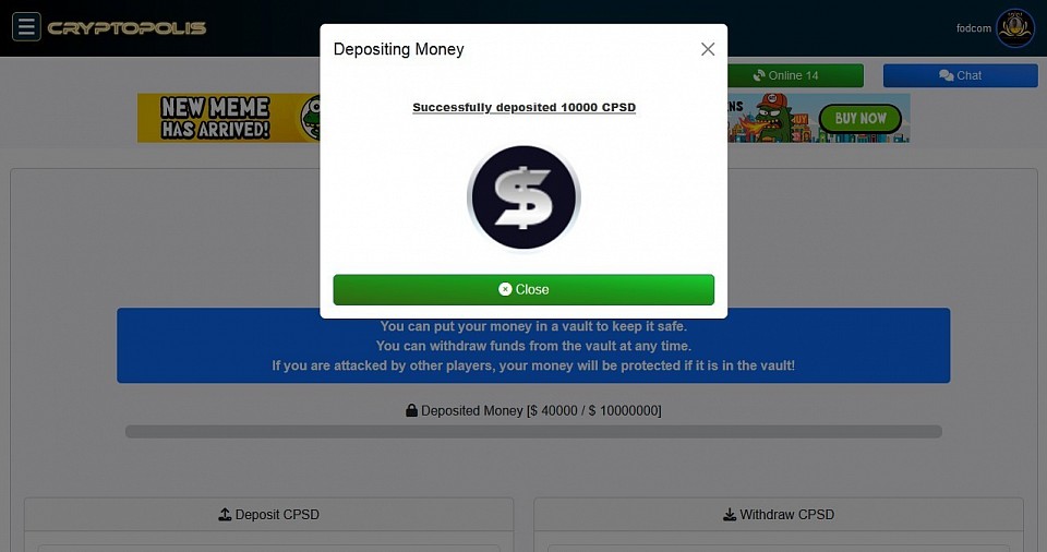 @ Bank - Deposit of money into bank wallet. Amount : 12,105 CPSD