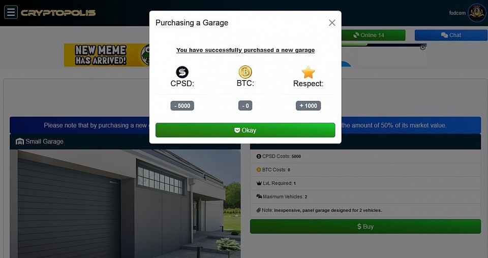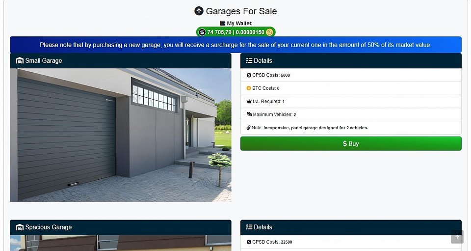 @ Garage - Successfully purchased a Garage for 5,000 CPSD.