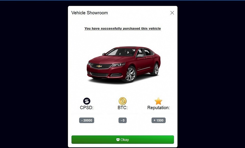 @ Car - Successfully purchase a car for 30,000 CPSD.