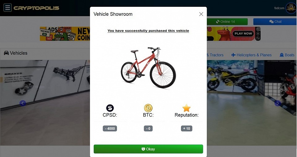 @ Car Market - Successfully purchased a bicycle for package delivery.