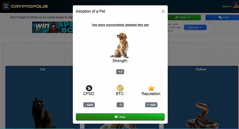 @ Pet - Successfully purchased a pet, a dog.