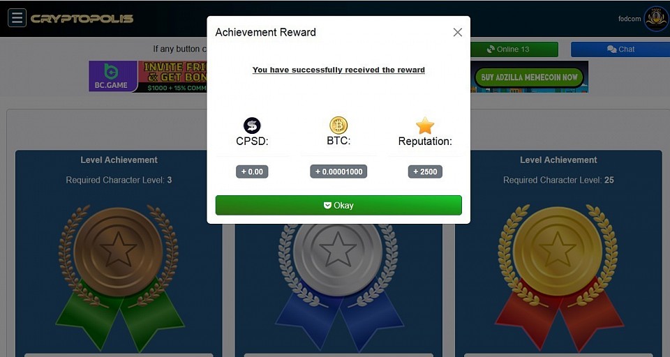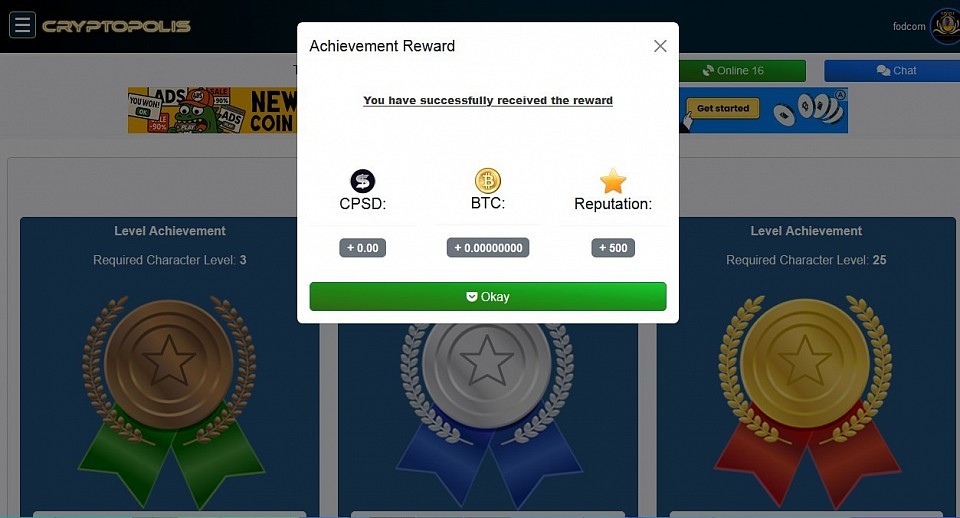 @ Achievement - First stage of "Business Achievement" successfully completed. And rewards received