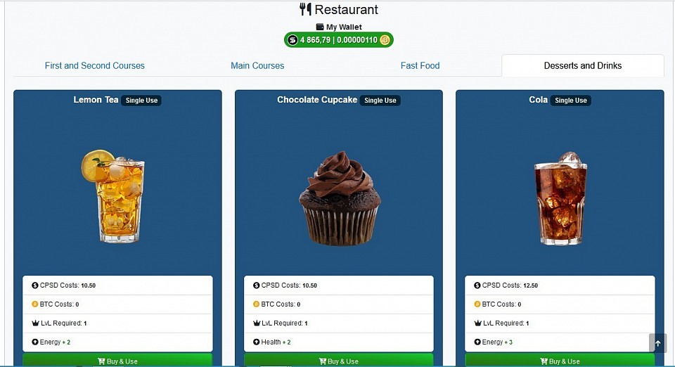@ Restaurant - These are Desserts and Drinks purchased in order to replenish "Energy and Health".