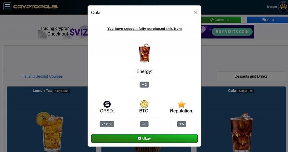 @ Restaurant - Purchase of Cola Drink to replenish Energy.