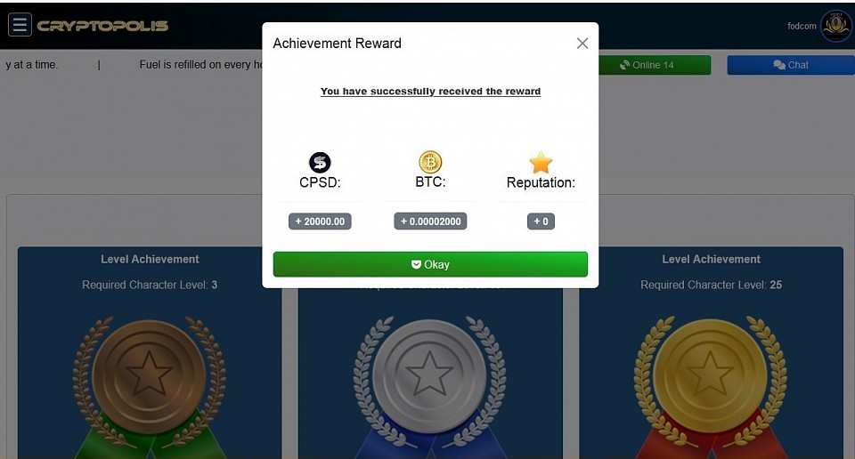 @ Achievement - First stage of "Level Achievement" successfully completed. Rewards recieved.